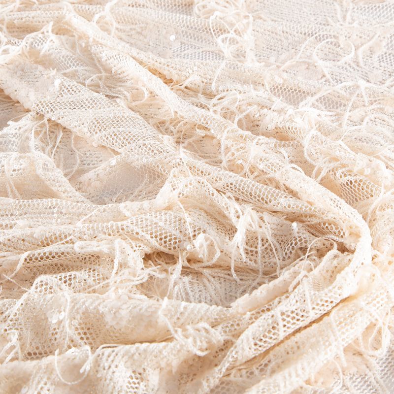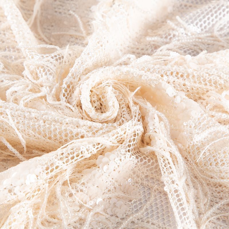 Сетка с вышивкой и пайетками 055-20762 сливочный