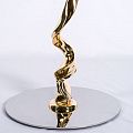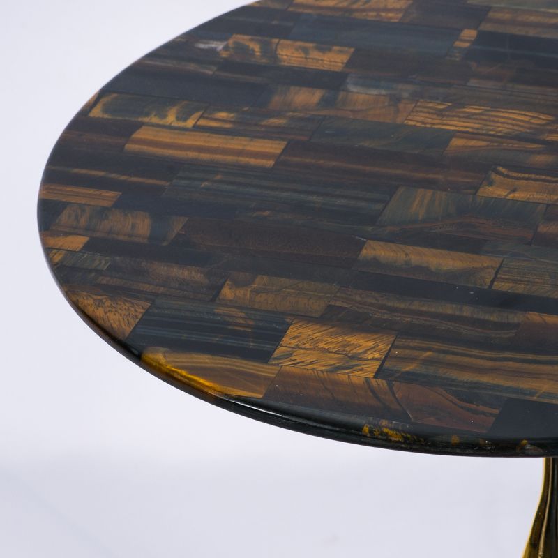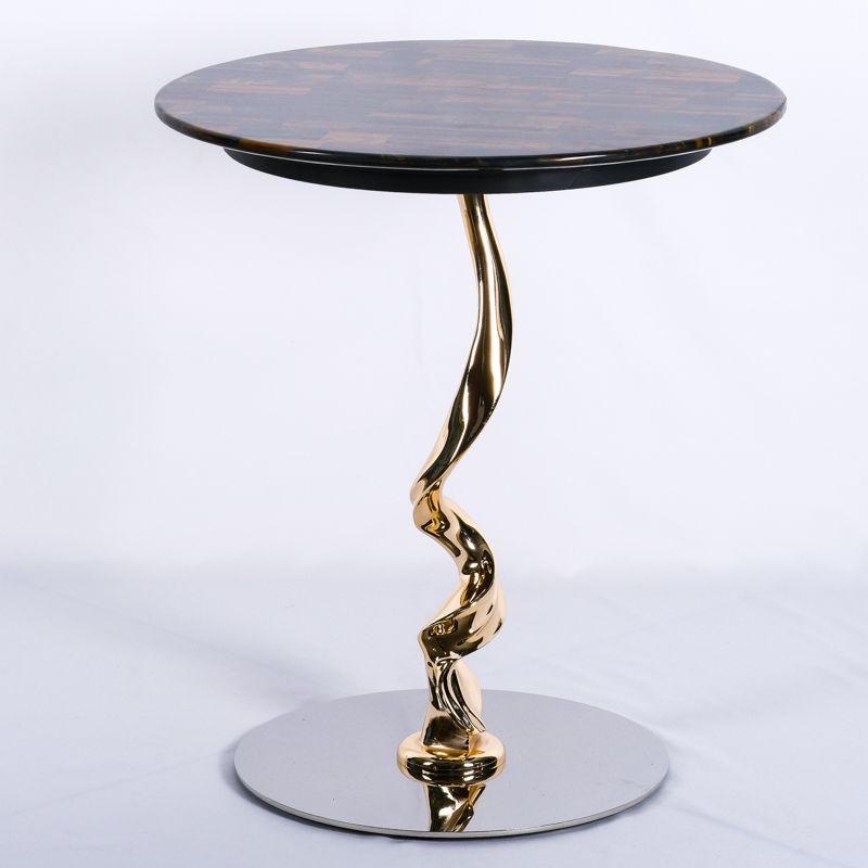 Столик кофейный/журнальный. Высота 50 см, диаметр столешницы 45 см. Подстолье выполнено из металла - золото хром, столешница - камень в коричневых оттенках.